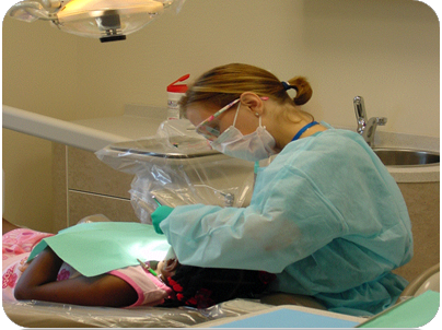 Featured Image: Bowen Center for Health Workforce Research and Policy Director Dr. Hannah Maxey providing dental care to a child in 2002.