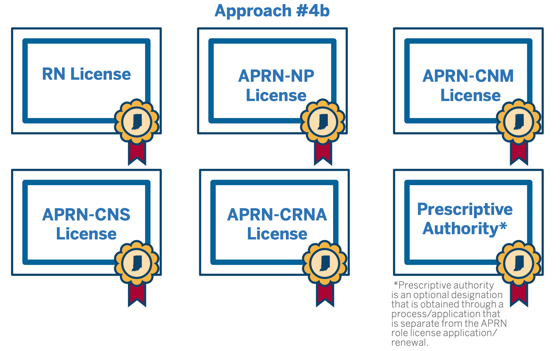 As of 2023, there were 9,134 Advanced Practice Registered Nurses (APRN) reported to be practicing in Indiana. These APRNs include Nurse Practitioners (NP), Clinical Nurse Specialists (CNS), Certified Nurse Midwives (CNM), and Certified Nurse Anesthetists (CRNA). APRNs are required to be licensed as Registered Nurses (RN) and meet certain educational criteria to provide APRN-level services. CNMs are the only APRNs required to hold a separate, dedicated license in Indiana. Many Indiana APRNs (NP, CNS, CNM only) hold a prescriptive authority license. This license enables APRNs to prescribe medications and requires collaborative practice agreements with a licensed physician, dentist, podiatrist, or optometrist. Approximately 71% of Indiana APRNs hold prescriptive authority licenses, meaning about 29% of RNs who self-identify as APRNs hold no APRN-level license.