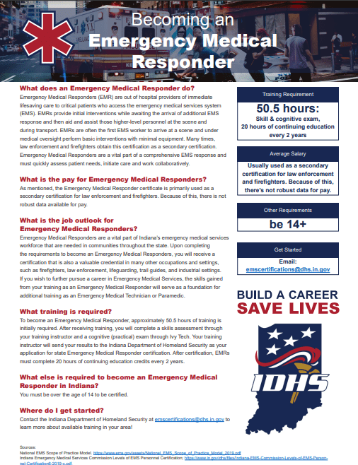 As first responders, emergency medical services (EMS) personnel such as paramedics and emergency medical technicians (EMTs) are critical to providing access to emergency services. Despite the importance of these professionals in emergency responses, EMTs and paramedics face challenges such as low-wage, high turnover, and high physical stress. All these factors result in ongoing staffing shortages which, although widely known in Indiana, have until this point been unable to be confidently quantified at a granular level. Previous research has examined contributing factors and potential solutions to workforce shortages, but the extent and applicability of these findings have been limited due to the lack of information available on the EMS workforce. In light of this and on recommendation from the Governor’s Public Health Commission, IDHS and IDOH have partnered with The Bowen Center to conduct an evaluation of Indiana’s EMS Workforce.